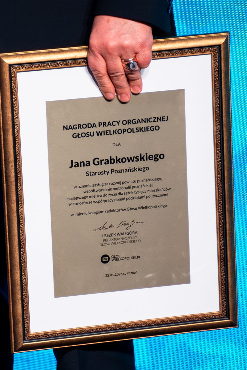 Jan Grabkowski otrzymał Nagrodę Pracy Organicznej „Głosu Wielkopolskiego”. To prestiżowe wyróżnienie, nawiązujące do XIX-wiecznej idei pracy organicznej, przyznawane jest za wybitne dokonania w nauce, kulturze, polityce, gospodarce czy biznesie. Redakcja gazety przyznaje tę nagrodę od końca lat 80-tych ubiegłego wieku. Wśród laureatów są m.in. Agnieszka Duczmal, Krzysztof Skubiszewski, Tadeusz Mazowiecki, Stefan Stuligrosz, Stanisław Barańczak oraz Jan AP Kaczmarek. Teraz do tego grona dołączył starosta poznański.