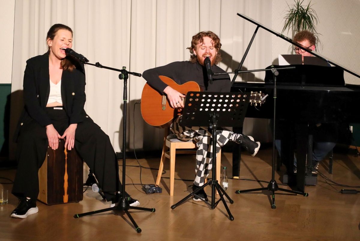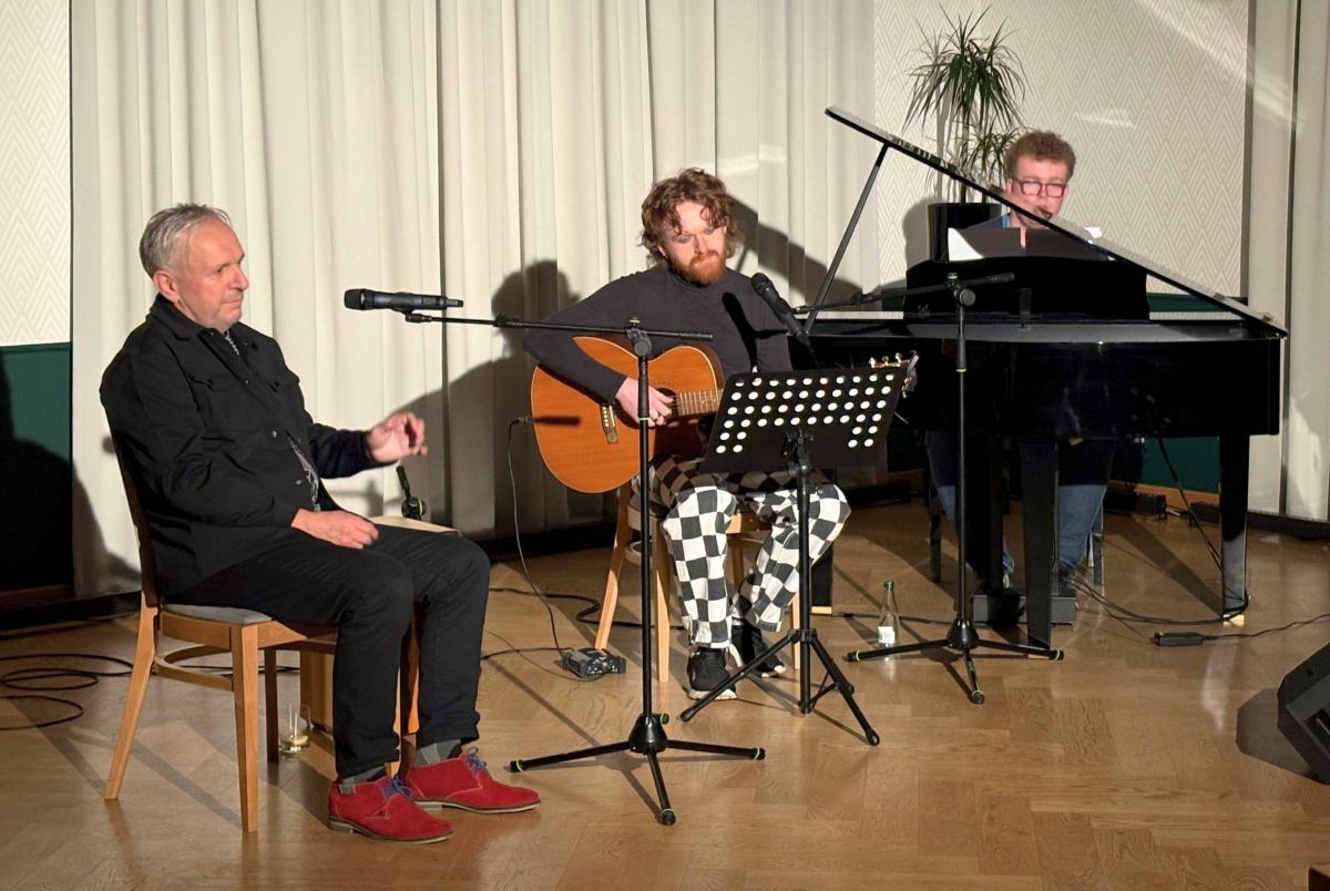 Aleksandra Skorupa, to pochodząca ze Stęszewa to reżyserka, dramaturżka i teatrolożka. Jest absolwentką krakowskiej Akademii Sztuk Teatralnych (dawniej PWST) oraz UJ i UAM. Jej profesjonalne zaplecze było widać w każdym geście – to ona nadała wieczorowi dramaturgiczną strukturę, dbając, by każde słowo miało swój ciężar. Dominik Sikora, to gitarzysta znany jako „Krakowski Bard” z Myślenickich Salonów Poezji. Choć zawodowo związany z technologią żywności, na scenie objawił się jako rasowy artysta alternatywny i aktor-amator, potrafiący nawiązać z publicznością niezwykłą nić porozumienia. Filip Sikora, to najmłodszy na scenie, uczeń szkoły średniej i absolwent Szkoły Muzycznej I stopnia. Jego akompaniament był dyskretny, a zarazem precyzyjny, tworząc dla wierszy i śpiewu bezpieczną, muzyczną przystań.