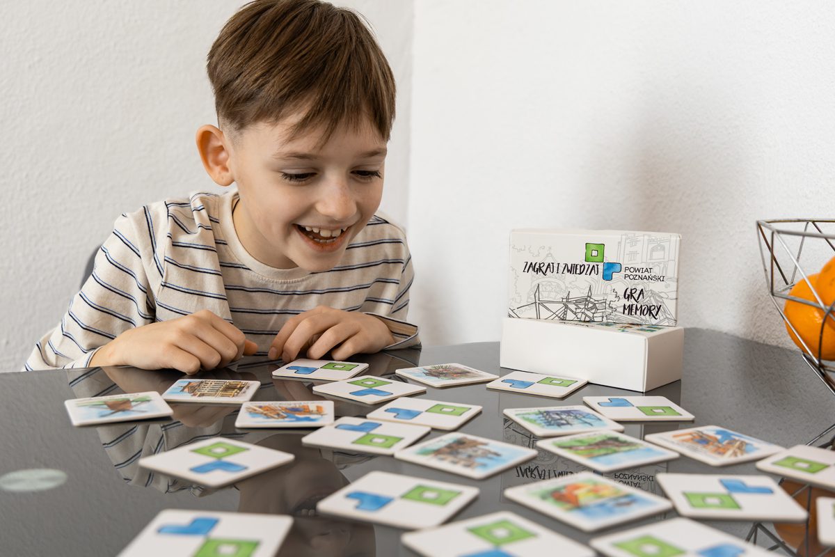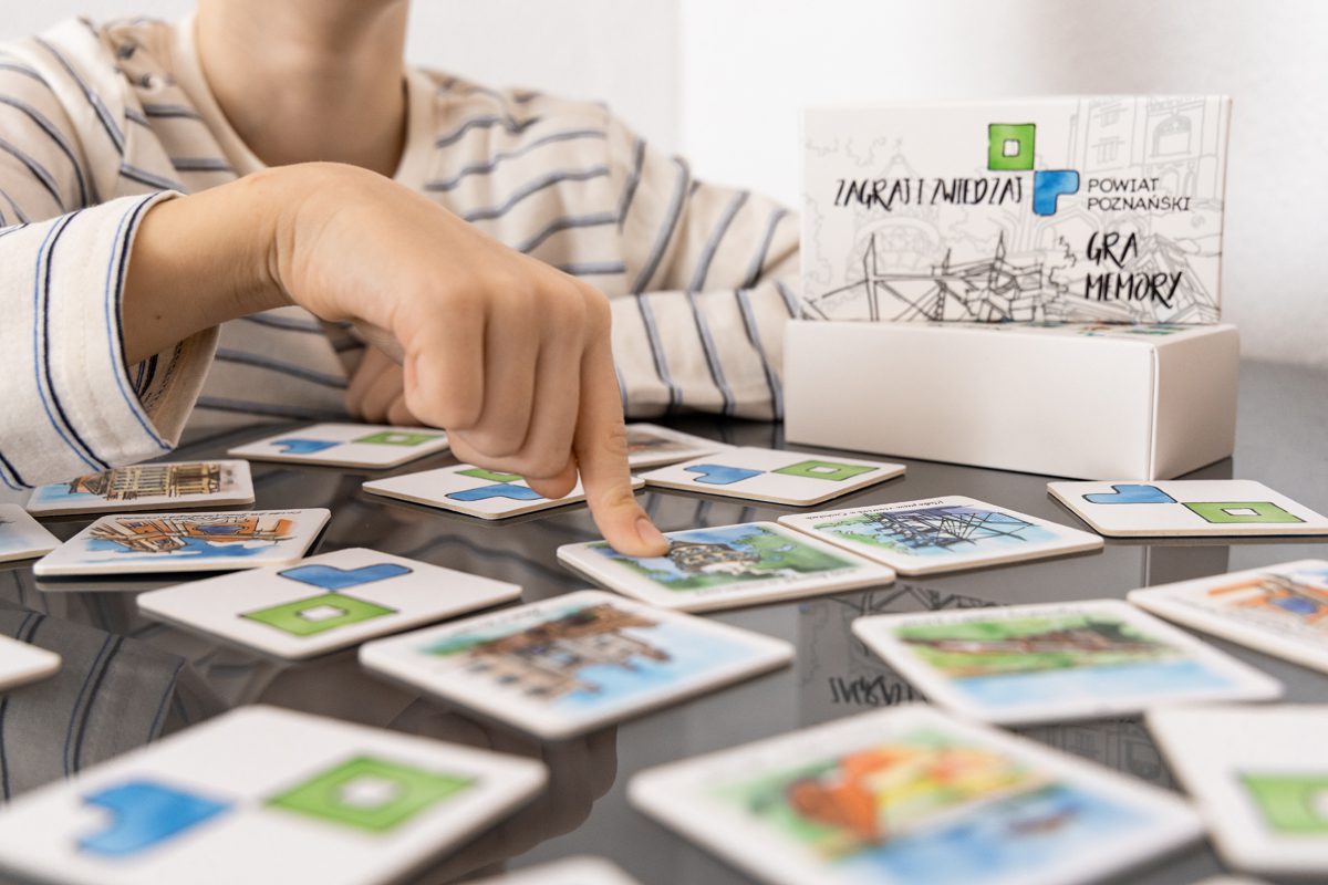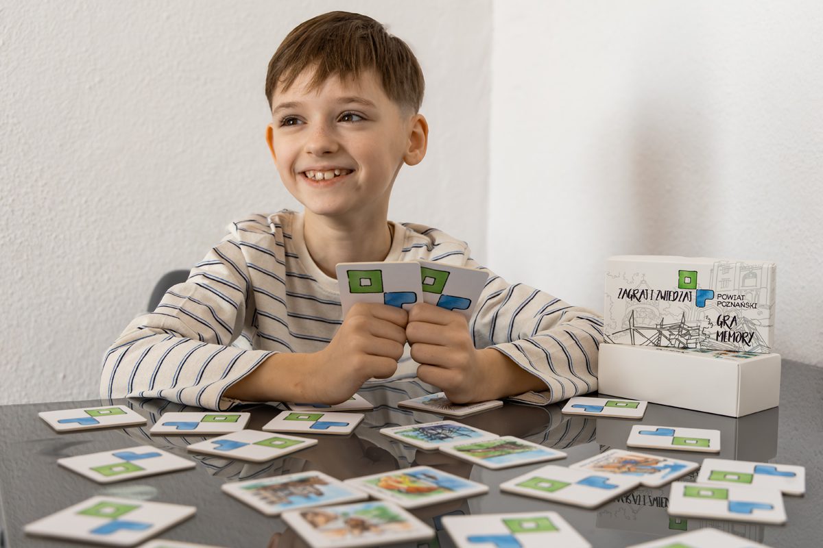 „Zagraj i zwiedzaj” – taki tytuł ma gra memory, którą przygotowaliśmy dla naszych mieszkańców i turystów. Zarówno tych młodszych, jak i starszych. Gra składa się z piętnastu podwójnych kart, które należy do siebie dopasować. Prezentujemy na nich wybrane miejsca w powiecie poznańskim. Zarówno te najbardziej popularne, jak choćby Pałac w Rogalinie, Zamek w Kórniku, Park Orientacji Przestrzennej w Owińskach, ale też te mniej oczywiste. A na pewno warte odwiedzenia… Jakie to miejsca? Choćby wiatrak koźlak w Czerlejnie, trójarkadowy wiadukt w Wirach czy Tarnowskie Tężnie.